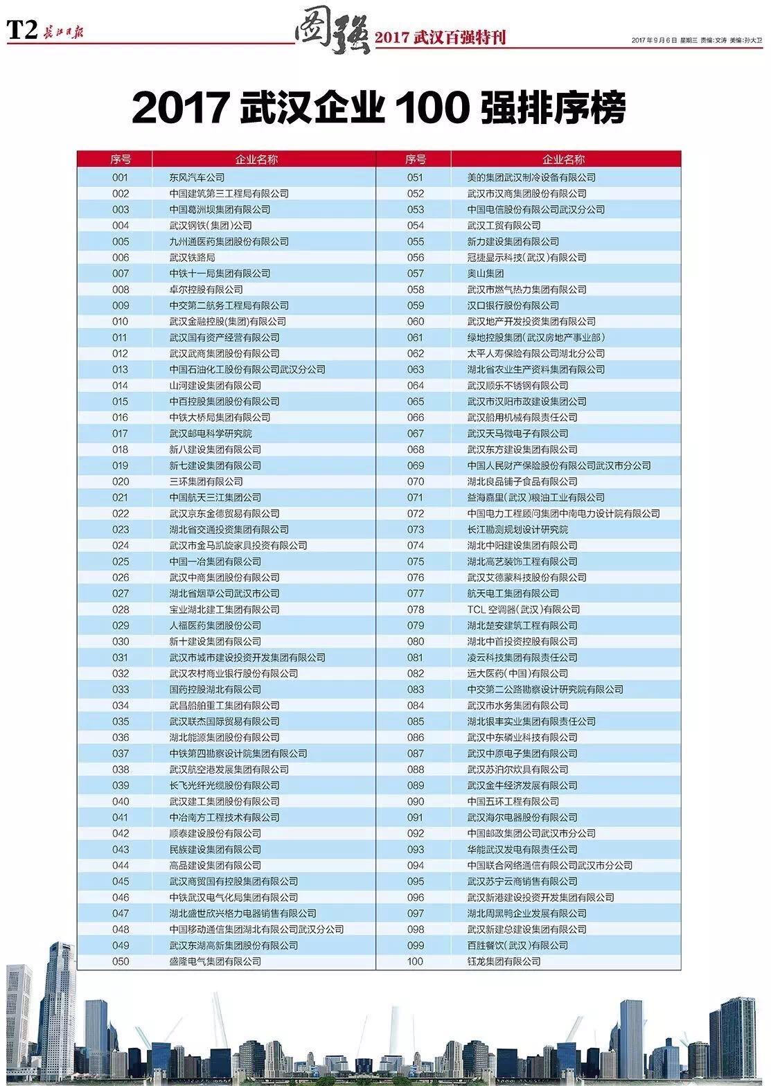 位列2017武汉企业100强第29名,
